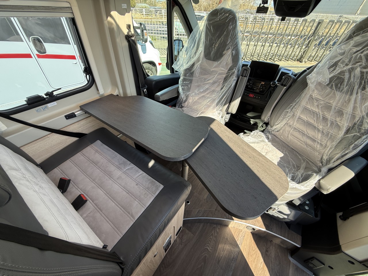 全長5410mmの右ハンドル仕様。回転させたフロントシートとセカンドシートでテーブルを囲む仕様になっております。