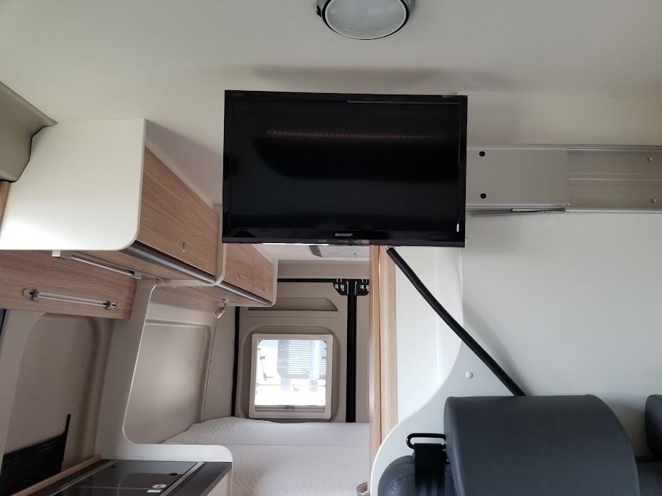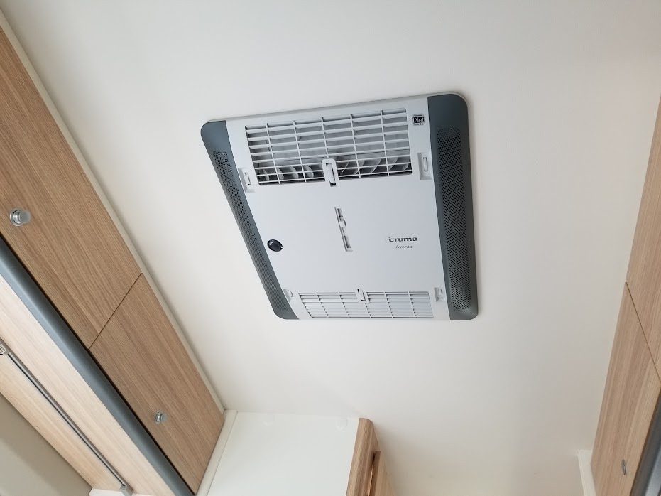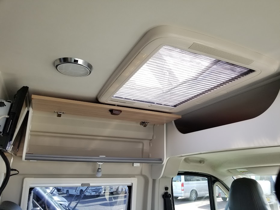 こちらの車両は、ルーフエアコンと日本仕様の電装にするオプション、DJEパッケージ(Dethleffs Japan Electric Package)装備車になります。