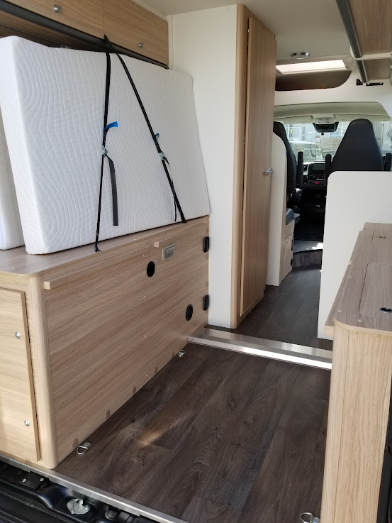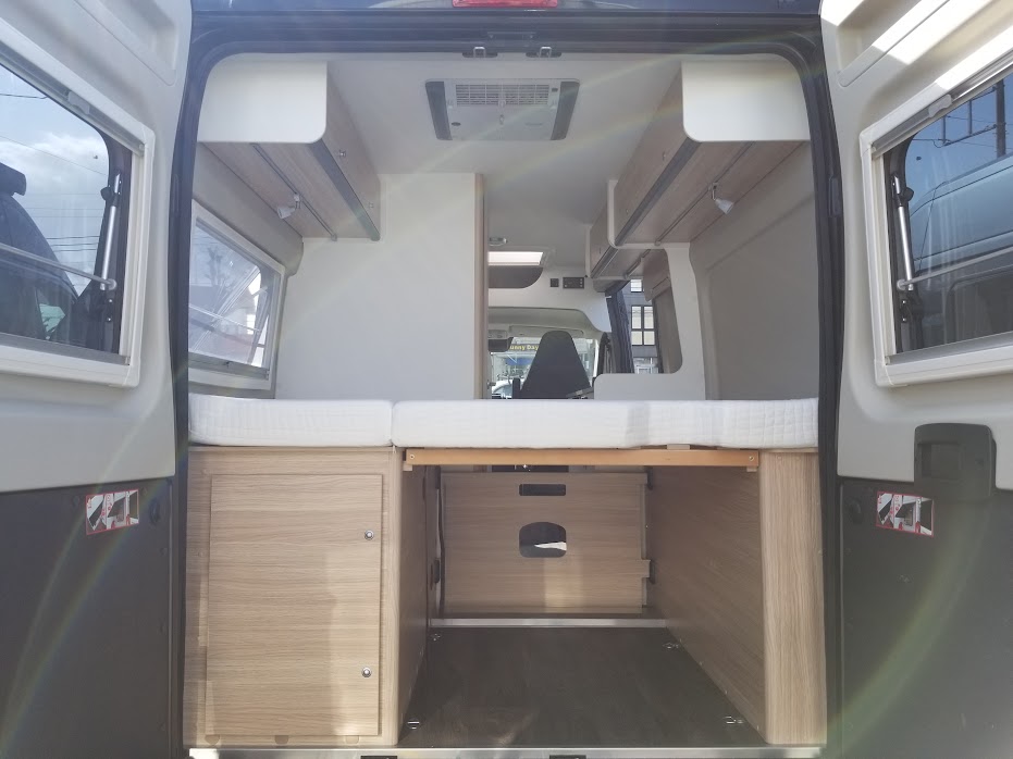 常設ベッドのウッドスプリングは取り外し可能で、大きな荷物や長物のアイテムもリアハッチから収納できます。