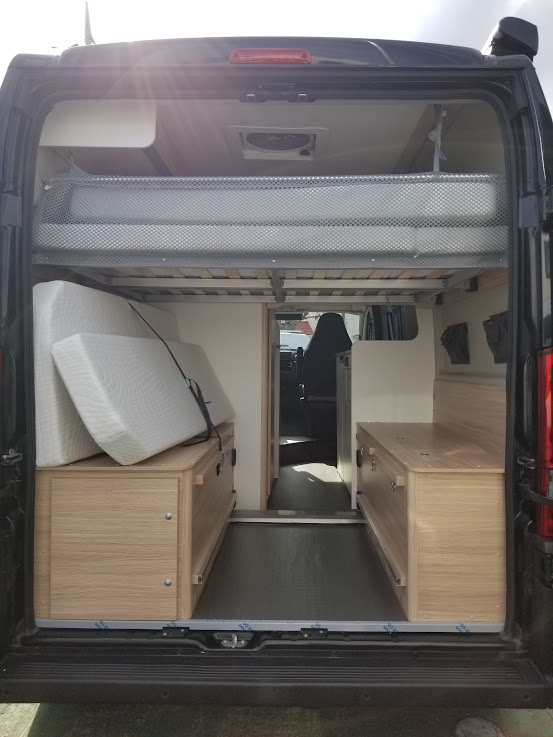 常設ベッドのウッドスプリングは取り外し可能で、大きな荷物や長物のアイテムもリアハッチから収納できます。