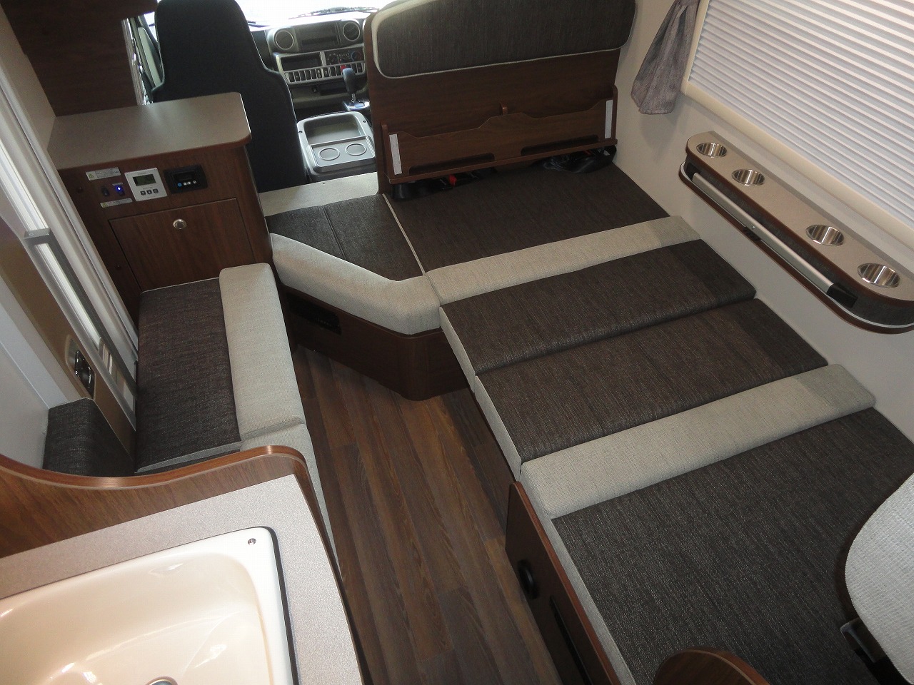 普通免許で乗れるモビーの2段ベッドレイアウトのR2Bを現在東京本店にて展示しております。納期の早い車両もご用意がございますので、是非お車をご確認下さい。