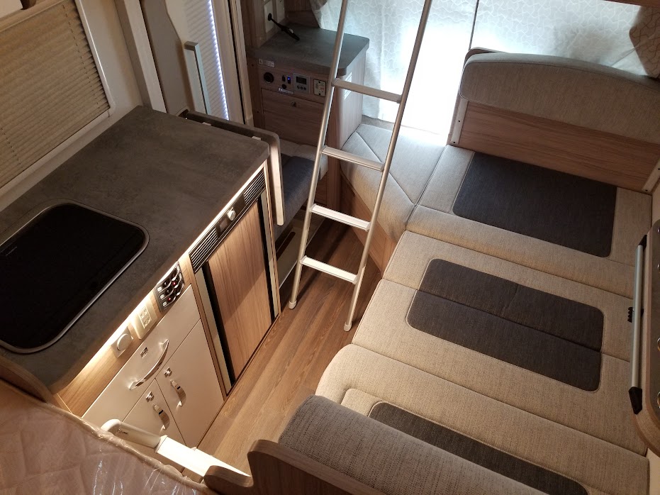車内を遮る壁がないため、クーラーの循環効率がよく、開放感あるダイネットスペースとなっております。