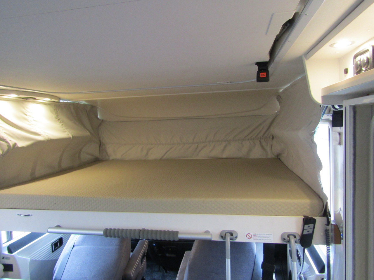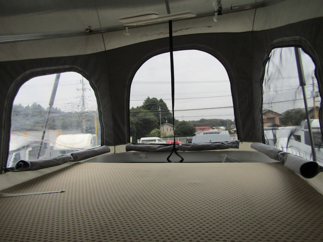 大型のポップアップルーフと電動プルダウンベッドで大人4人がゆったり寝られます。