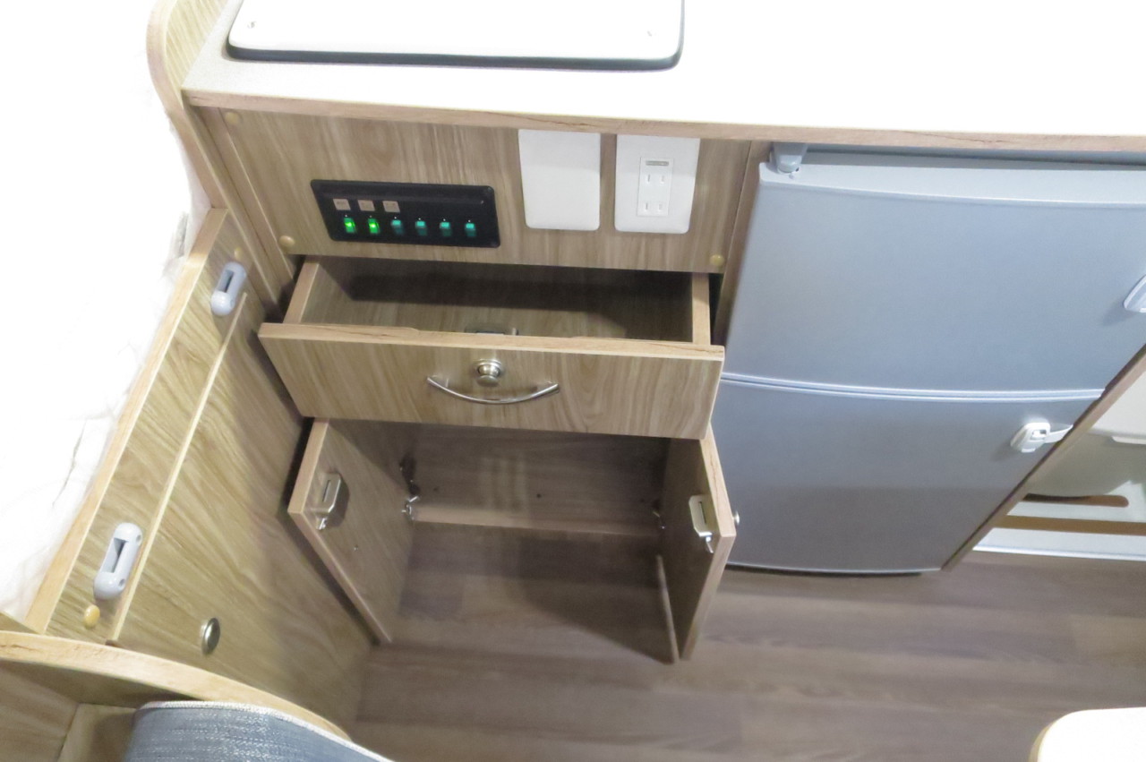 また、ベット下は広大なラゲッジスペースとなっており、左右後ろ3方向からアクセス可能です。また室内側の扉を開けば長尺物もしっかり収納可能です。