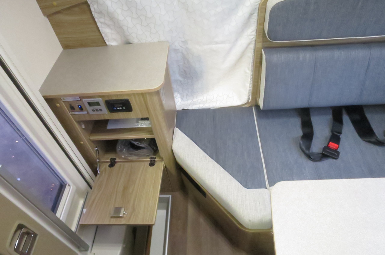 リアダブルベットスペースはカーテンで仕切る事が可能です!もしリアベットのみで就寝される場合はエアコンの稼働も少なく済みますのでバッテリーにも優しいです。