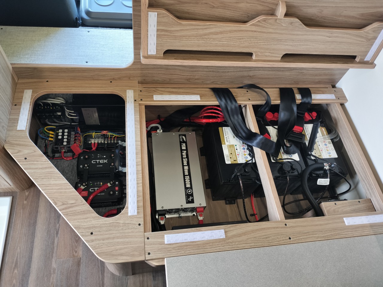 エアコンもリアベッド上部にあり室内空間を冷やすのみ効率的ですし、ポータブル蓄電池での稼働もご要望がございましたらご対応可能です。