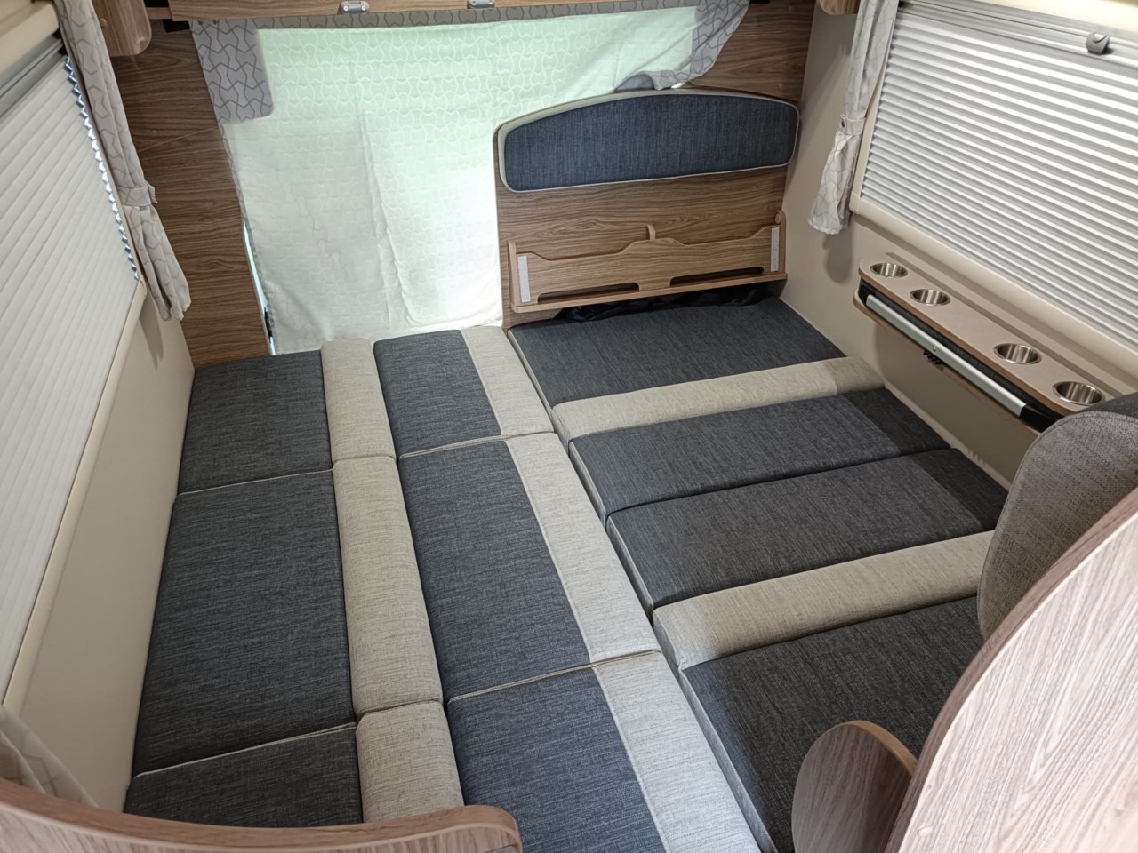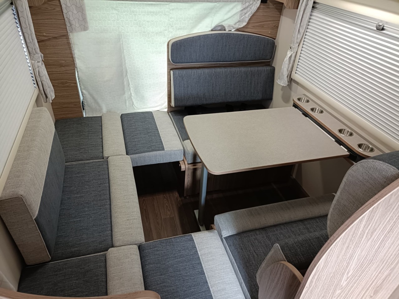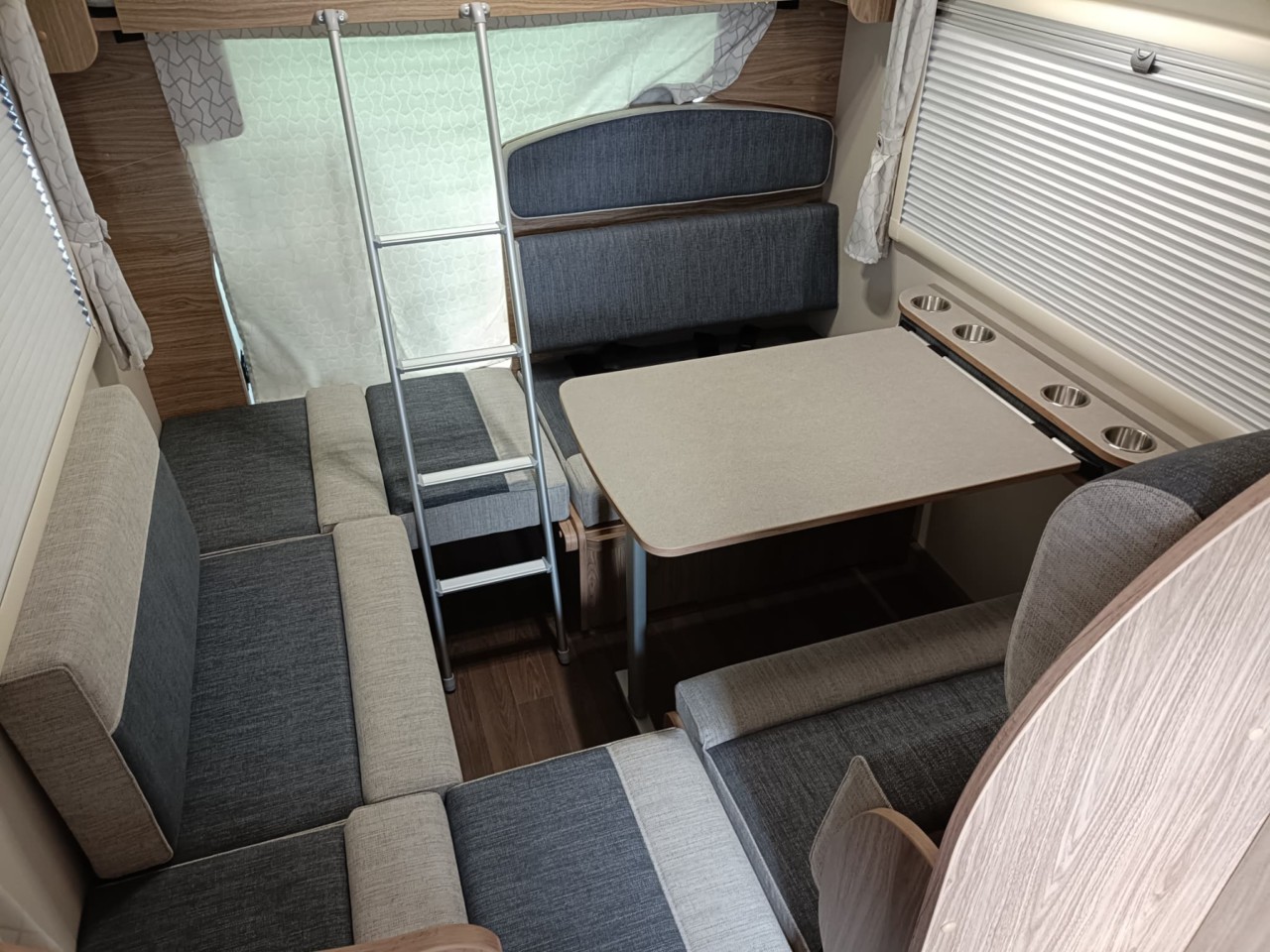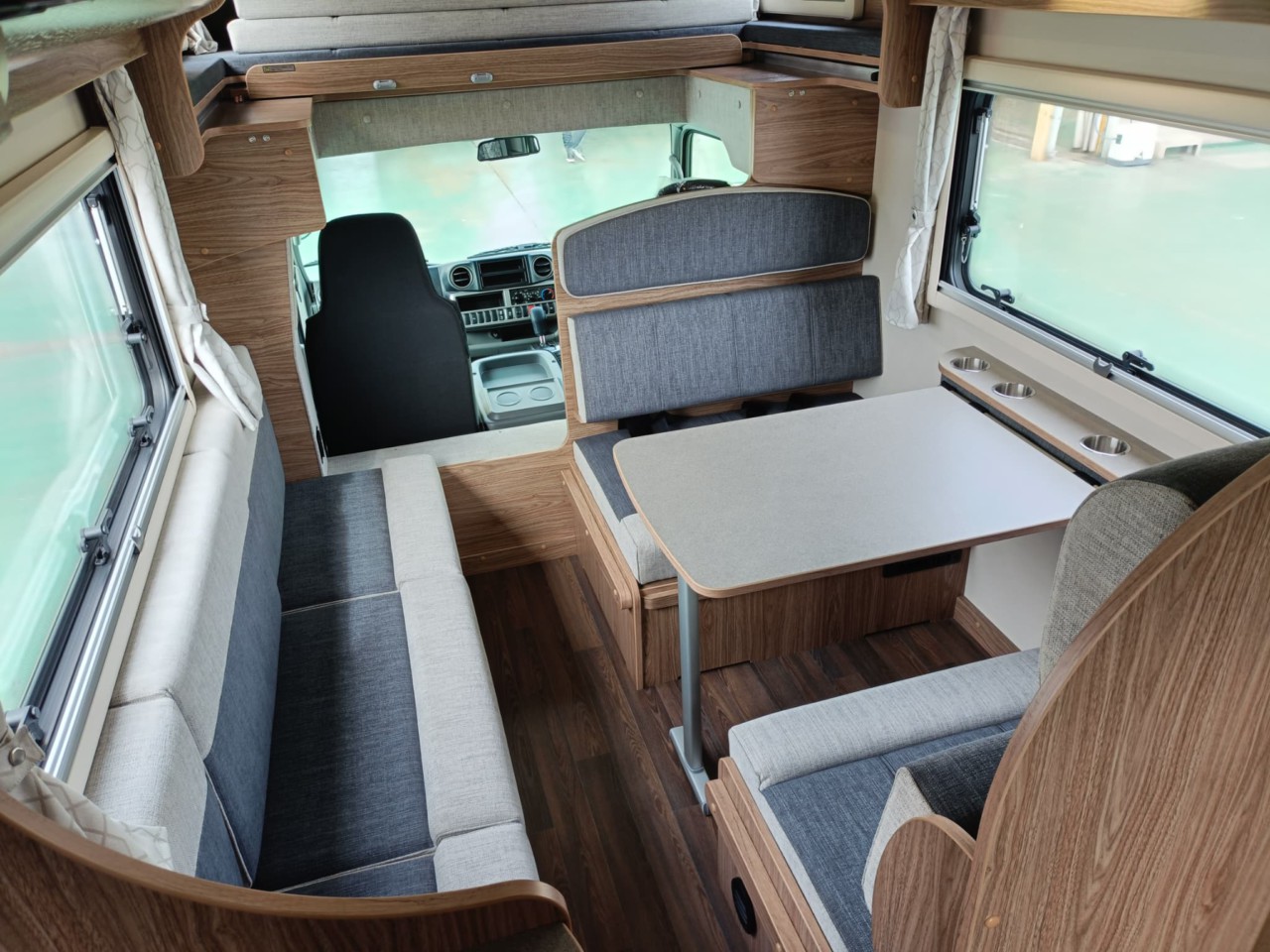 ダイネットは使用状況に合わせて掘りごたつ方式にすることができ、テーブルをたたまずとも横向きで就寝できます。
