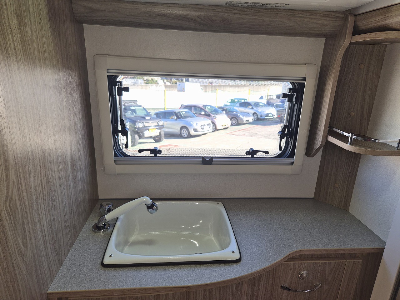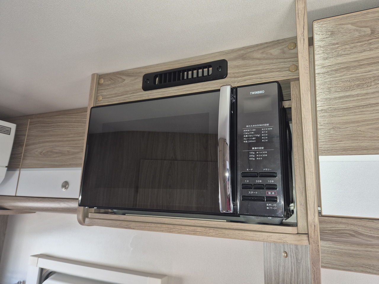 また、あえて常設ベッドを採用しない代わりに、大きなフリールームをリアに搭載し、その他電子レンジや冷蔵庫などキッチン周りを集約することで余裕のある作りになっています。