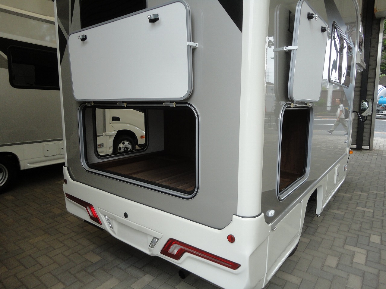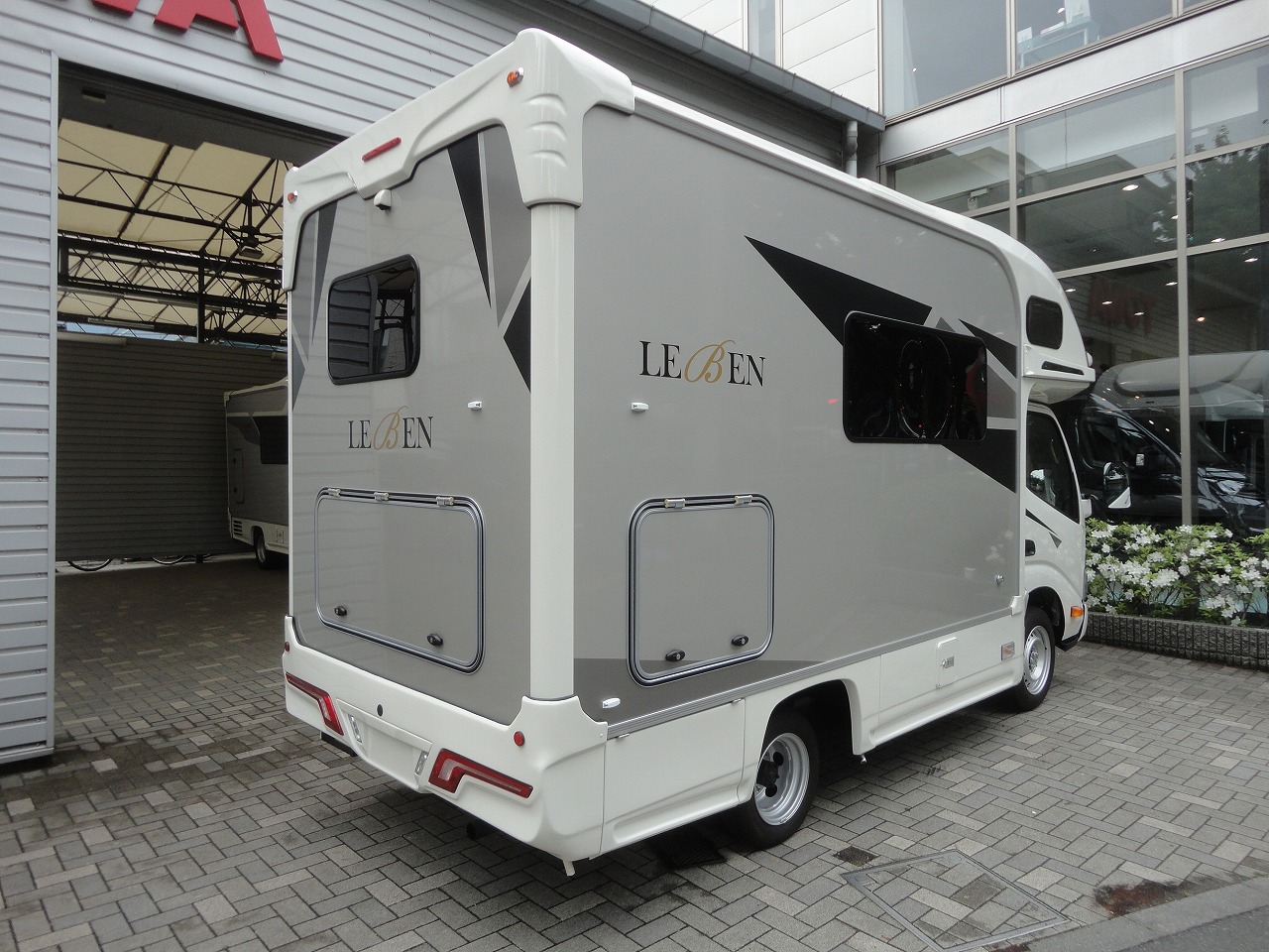 街乗りにも便利なコンパクト設計に、家庭用クーラーや充実した電源設備を搭載したLEBEN(レーベン)入庫しました。選べる3つのレイアウトから、一番の収納力を誇るRWBのモデルとなります。