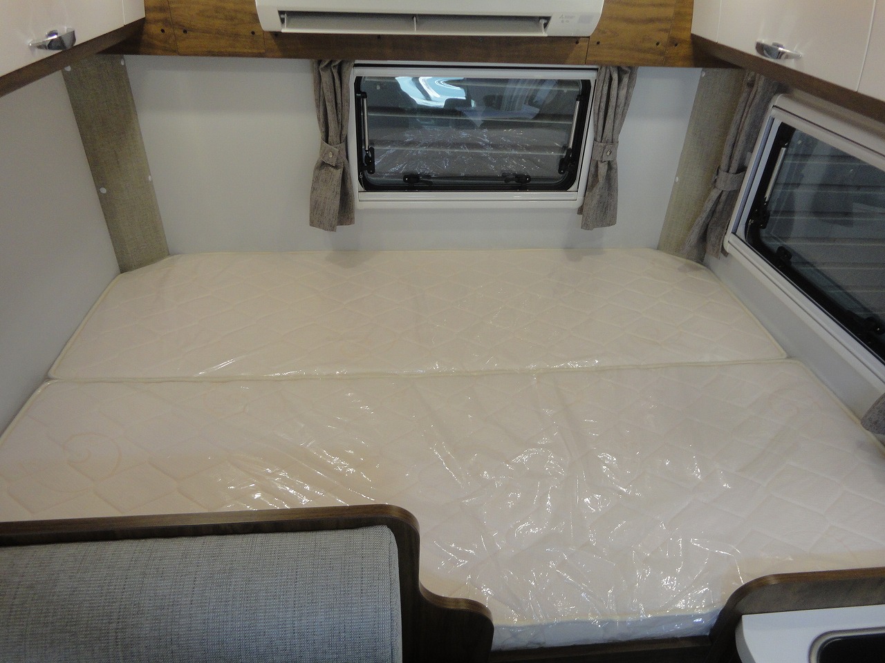 リアに常設ダブルベッドをレイアウトする事で広がりのある空間とし、ベッド下には大容量の収納スペースを備える事でアウトドアギアや大きな荷物もたくさん収納可能。
