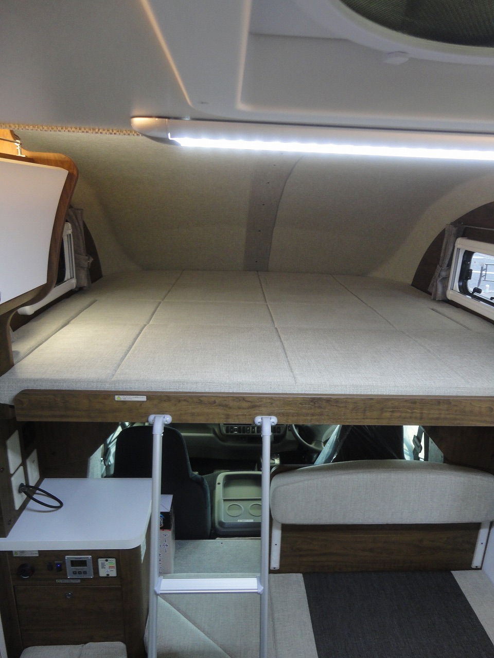 ベースは人気のカムロードでありながら、485cm×195cmの車両サイズに収める事で取り回しの良さと駐車のしやすさを実現しており、高速走行時の安定を高める為に強化サスペンションも装着し、後方の視界は常にデジタルミラーで確認出来るように標準装備されている為、キャブコンの運転に不安を感じている方にも是非おすすめの1台です。