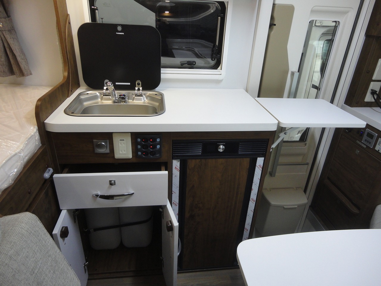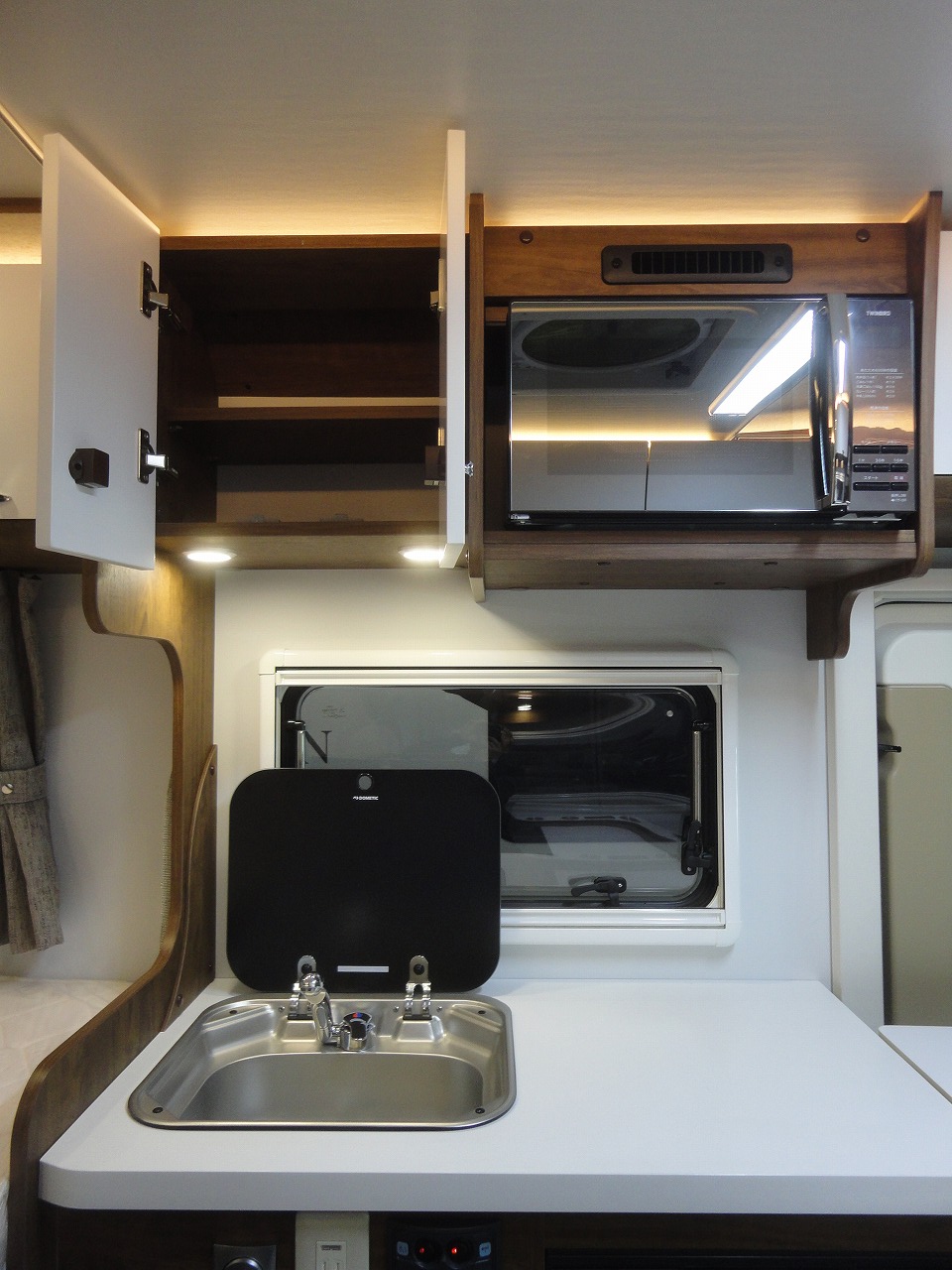 キッチン横には折りたたみ式のカウンターが備わっている為、調理スペースを広げて使える等、コンパクなながら実用性も兼ねたモデル、それがレーベンRWBです。