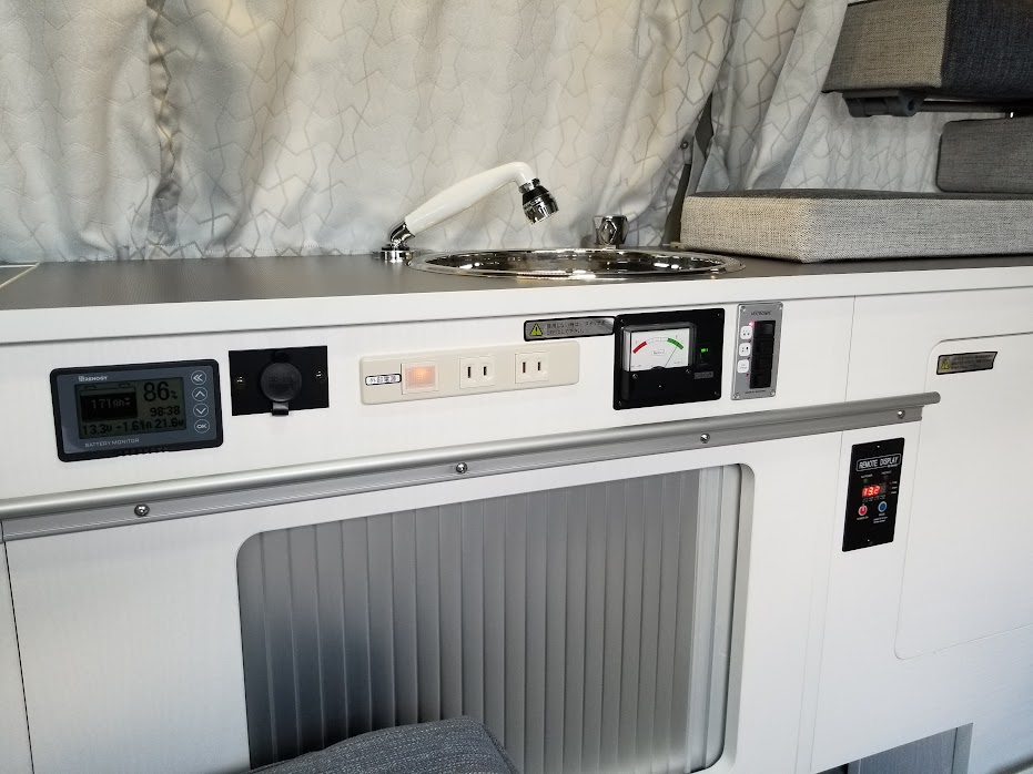車内装備には冷蔵庫、シンクはもちろんのことオプションでFFヒーターやインバーター等の取付も可能です。