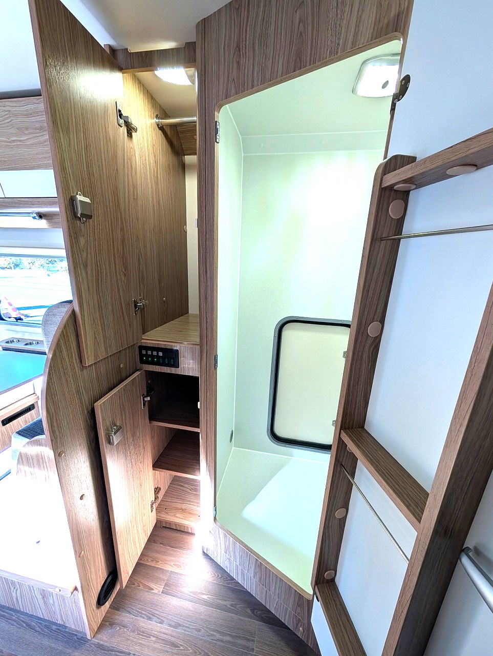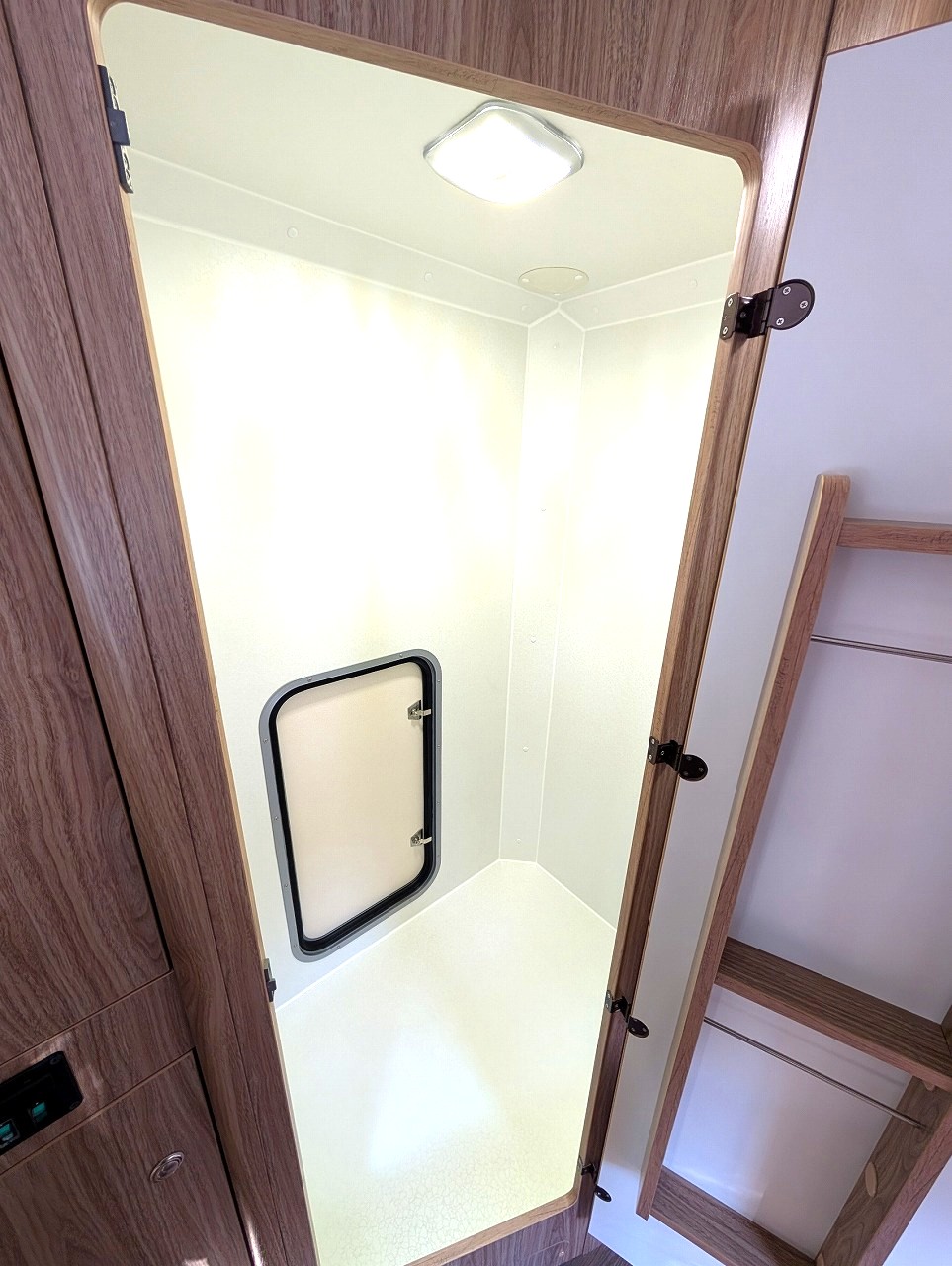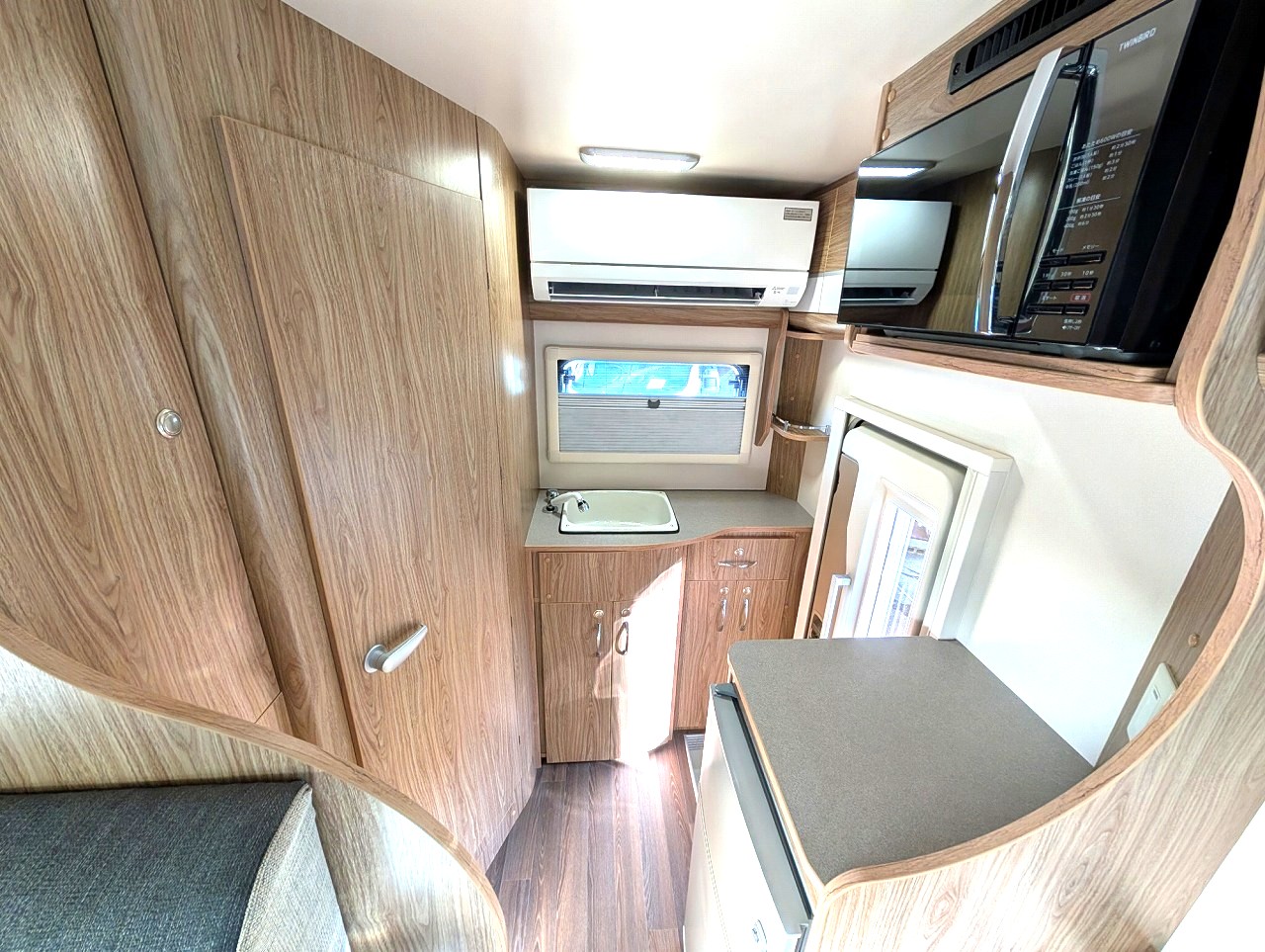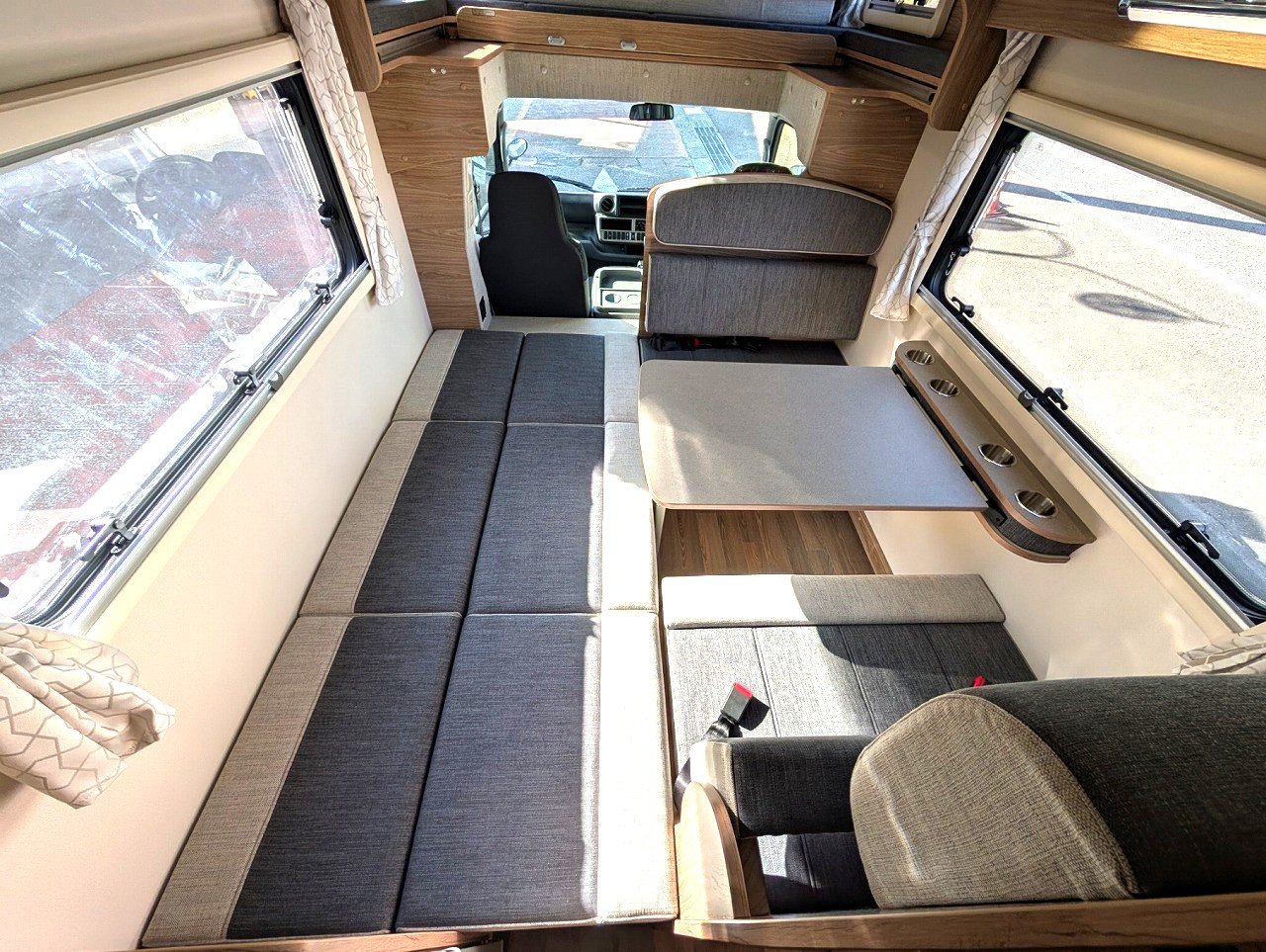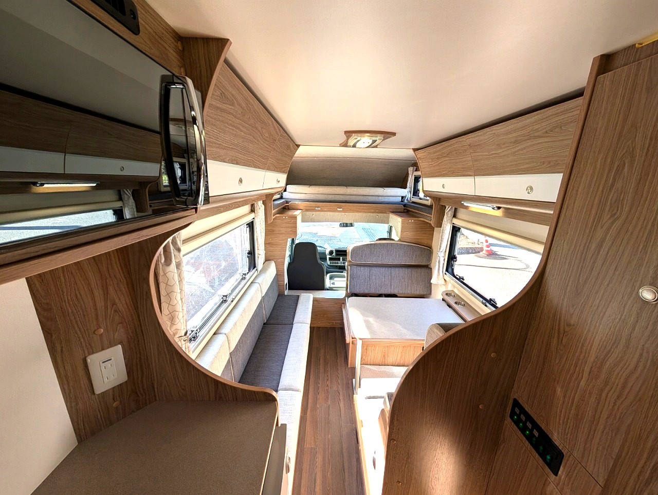 また、あえて常設ベッドを採用しない代わりに、大きなフリールームをリアに搭載し、その他電子レンジや冷蔵庫などキッチン周りを集約することで余裕のある作りになっています。