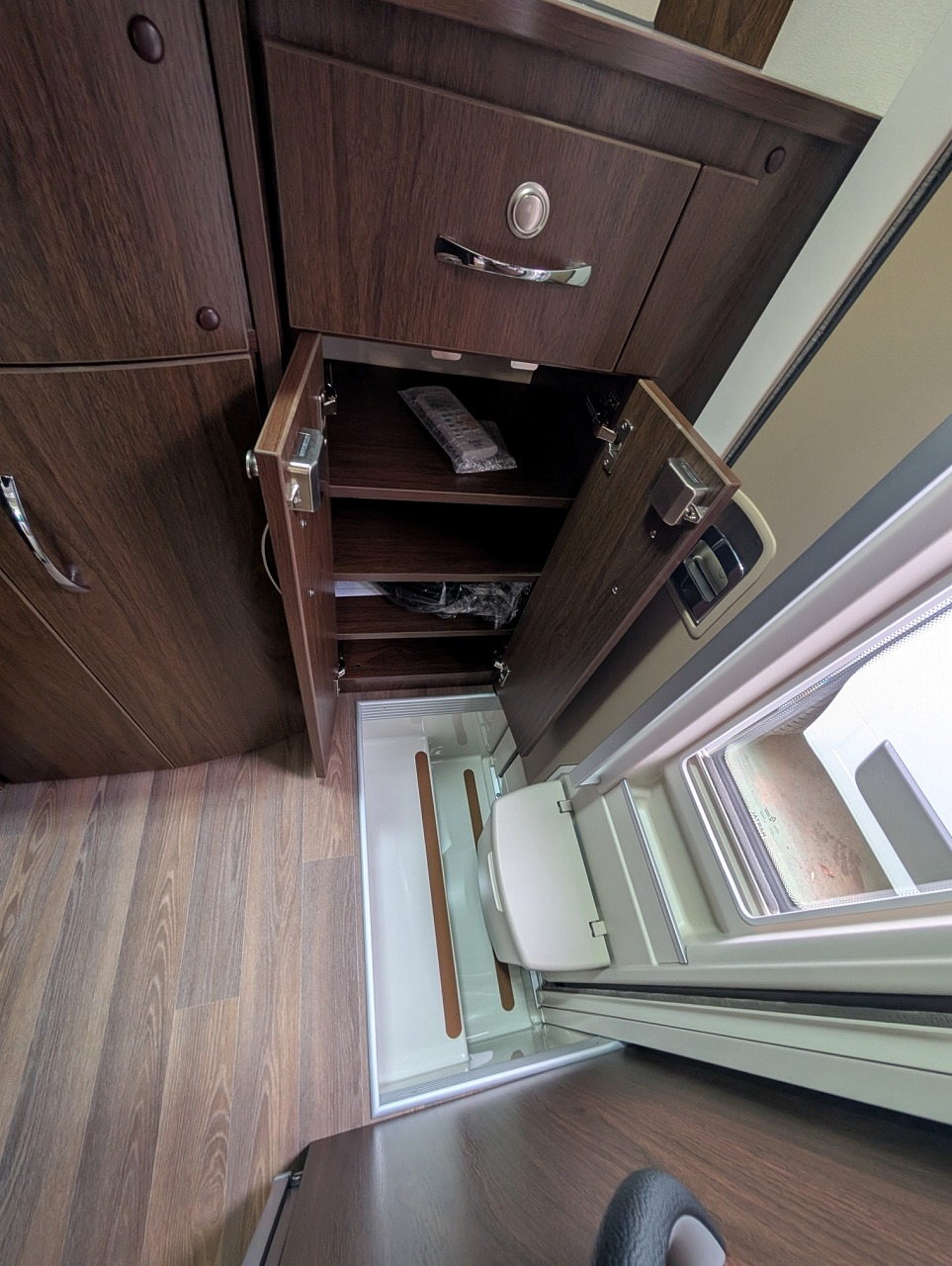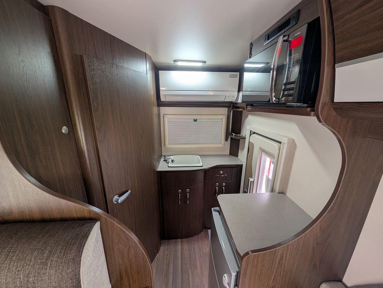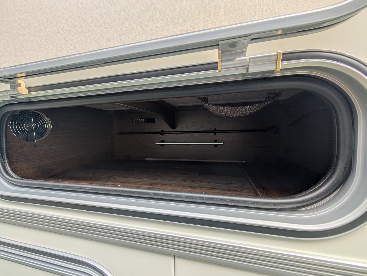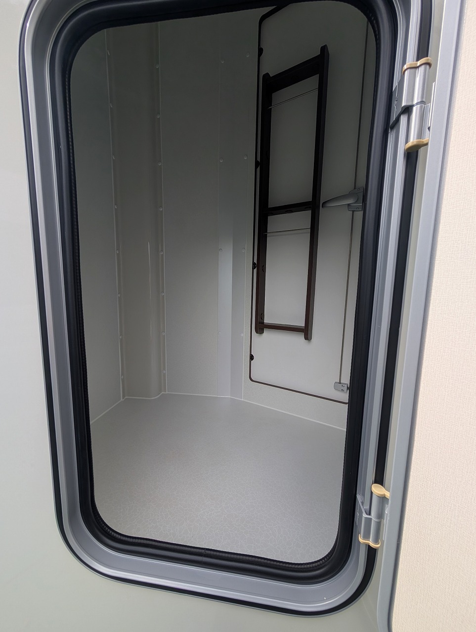 また、あえて常設ベッドを採用しない代わりに、大きなフリールームをリアに搭載し、その他電子レンジや冷蔵庫などキッチン周りを集約することで余裕のある作りになっています。