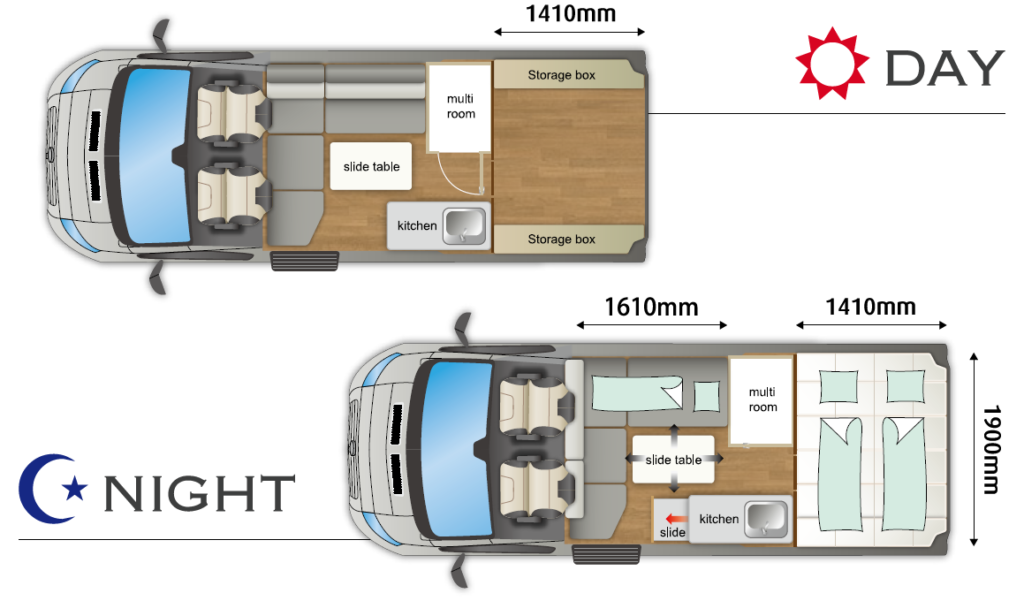 乗車定員7名 / 就寝定員大人2名(op装着時大人4名+小人1名)