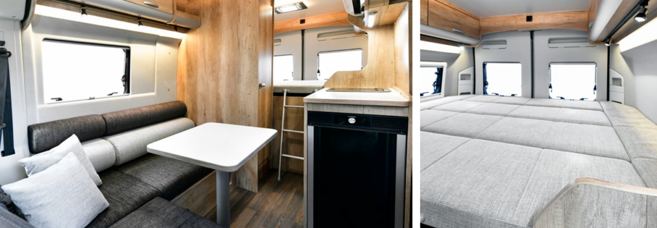 コンフォートパッケージはパワーリフトベッド(電動昇降式)と家庭用エアコンと追加リチウムバッテリー200Ahをセットにしたオススメ装備です!